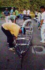| Tタイプ | FRP製。10人乗りドラゴンボートタイプ。 長さ6.7m 幅1.1m 高さ0.48m 重量140kg。 パドル漕ぎ。他艇よりスポーツ性高くスピード競技に適。 舵も操作性が高く初心者でも楽に操ることが可。太洋産業貿易社取扱いとか。 |