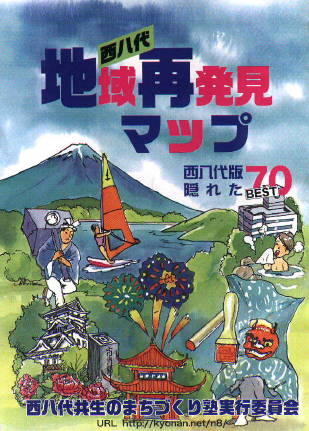 西八代って?「最近ちょっと元気がない」「影が薄い」って感じだけど、本当にそうでしょうか?よーく見ると「豊かな自然に恵まれ、人情味あふれ、こんなにいいとこ他にない」って思いませんか。そんな実行委員たちの熱い想いが「西八代再発見マップ」になりました。このマップが私たちのふるさと「西八」のすばらしさ再発見のきっかけになってくれることを願っています。(2000.3)西八代共生のまちづくり塾実行委員会